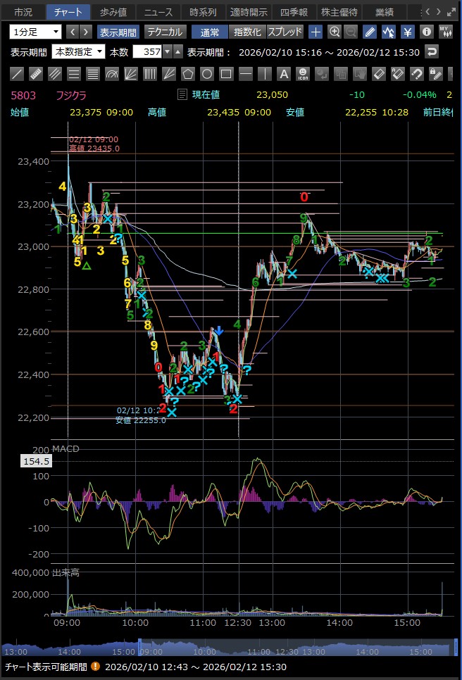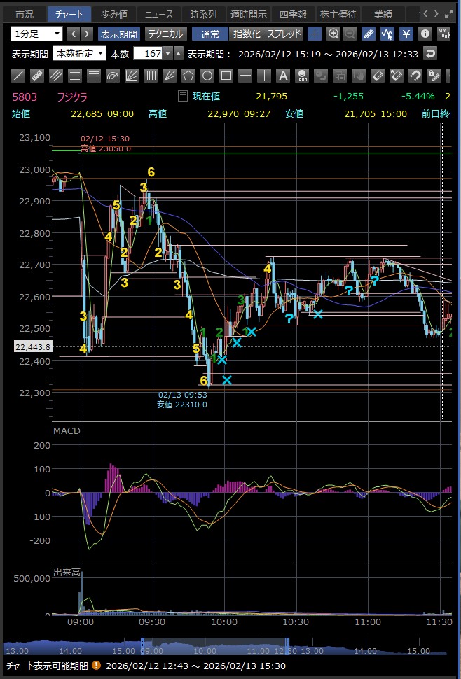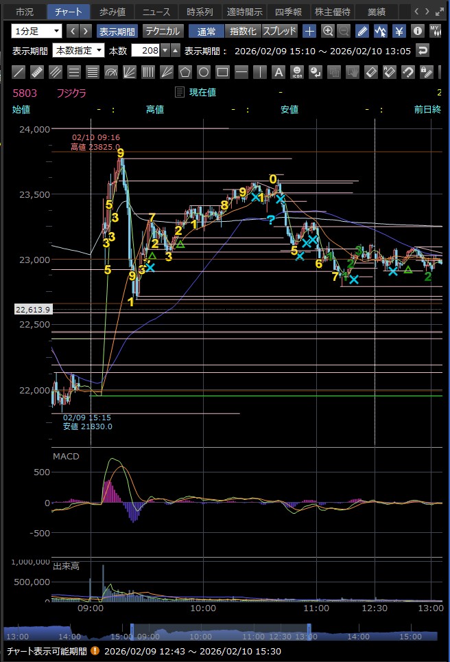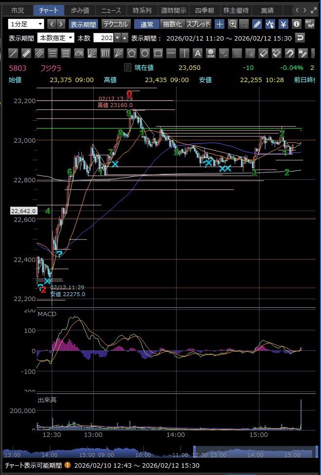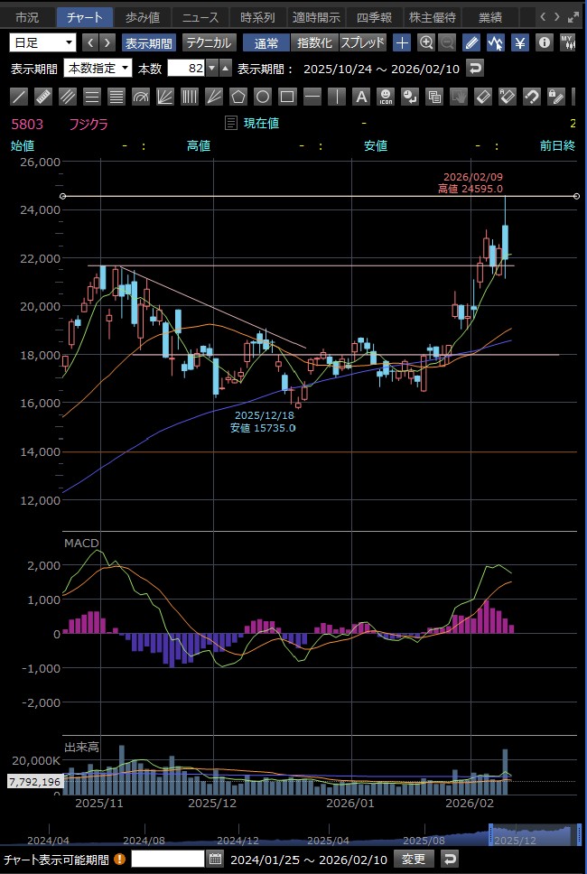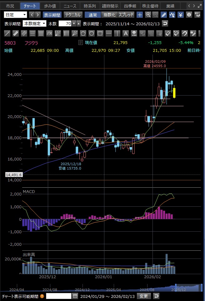 決算発表の14時に急落 好材料が既に株価に反映されており、決算発表後に利益確定売りが出て急落した — というのが2月9日のフジクラの後場の急落の主な理由のようだ 巻き込まれなくてよかった…><