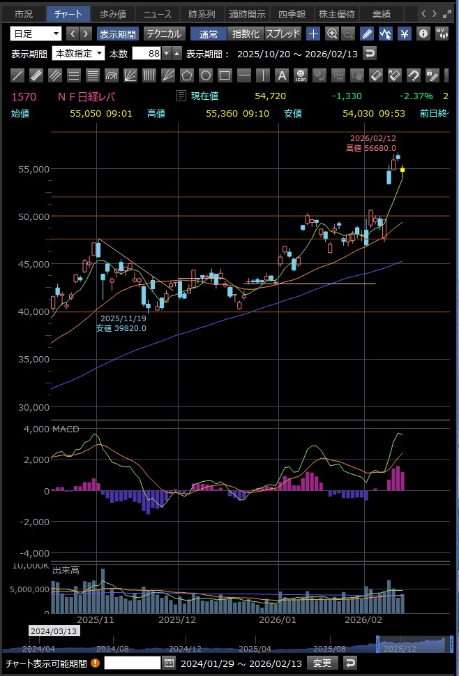 2月9日の急落から少し戻した(反発した) 2月10日は前日の急落の後、株価が下げ渋ったり戻す動きあり