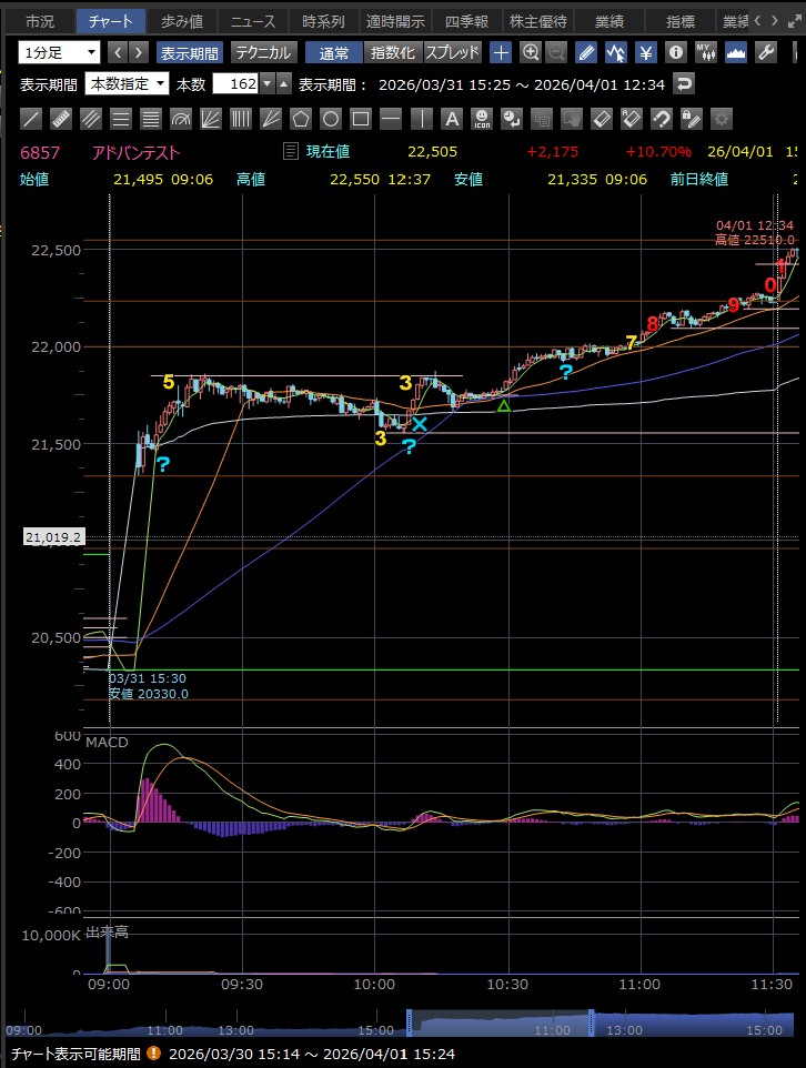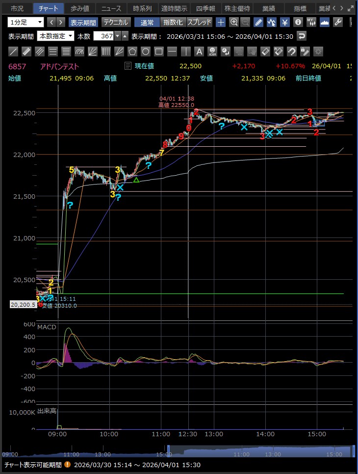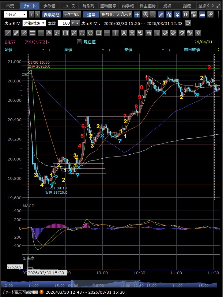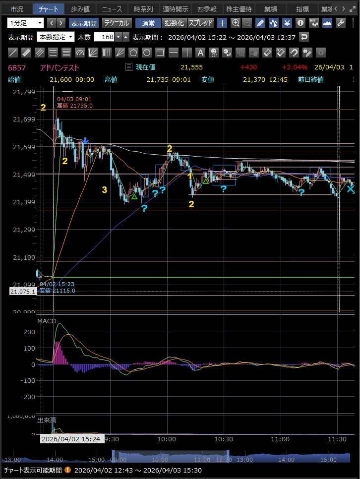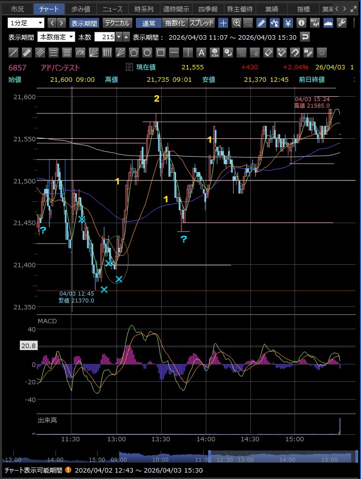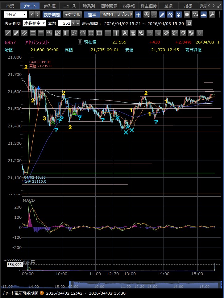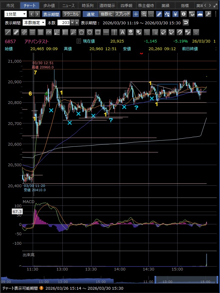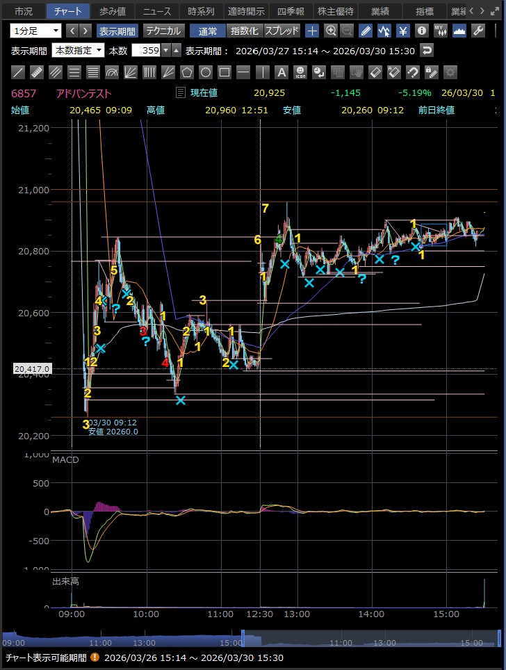 日中値幅 1,985円 前日の急反発の反動で、日経平均は高く始まったあと失速する寄り天気味の展開。朝方は一時 518円高 まで上昇したが、その後は利益確定売りに押されてマイナス圏へ転落。終値では反落し、値動きの荒い相場が続いた。