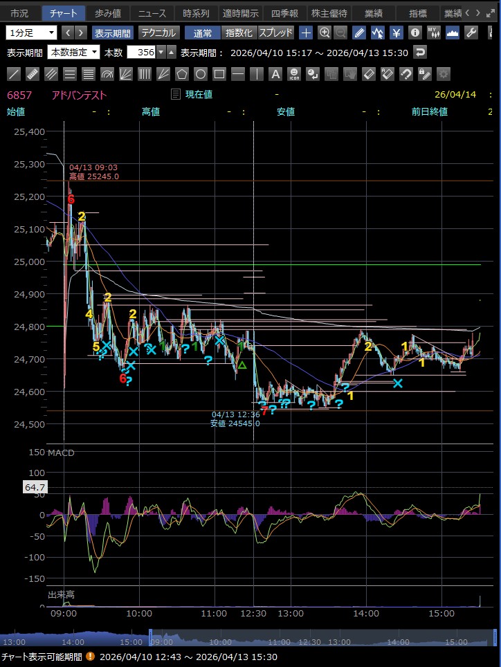 日中値幅 1,259円 急騰で高値更新(過熱感)