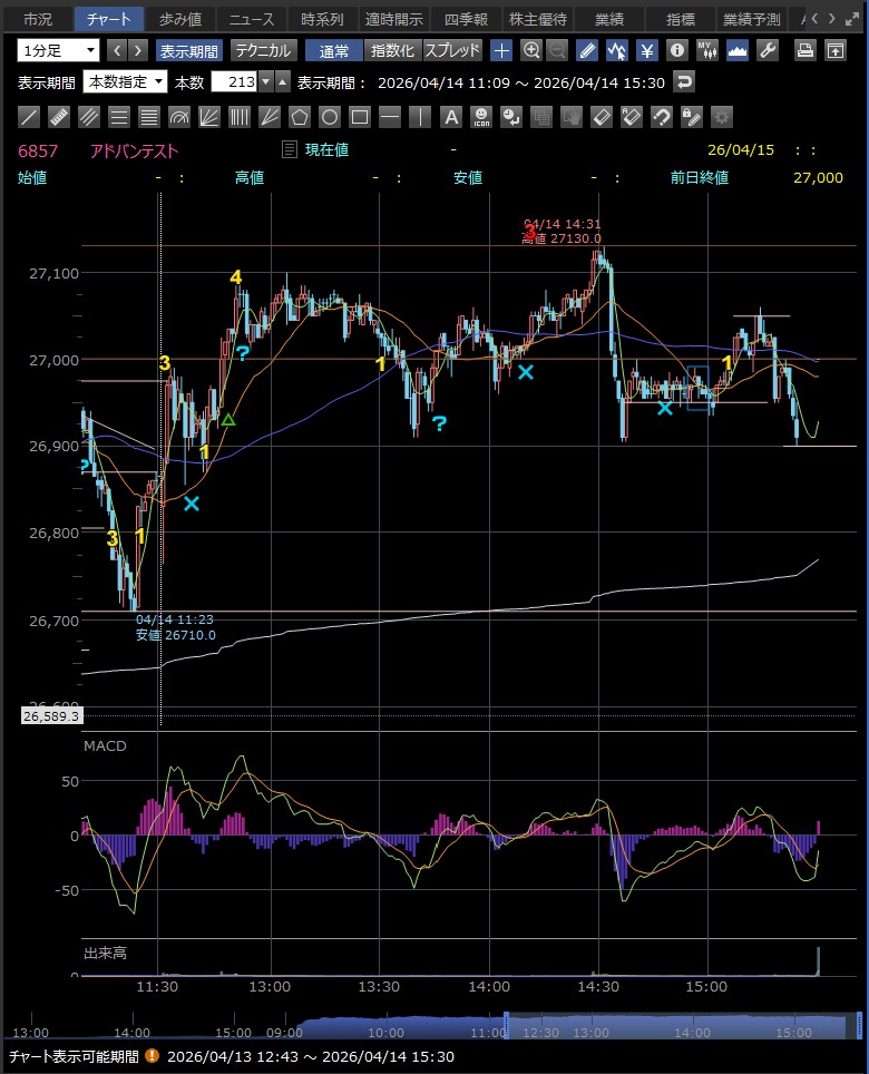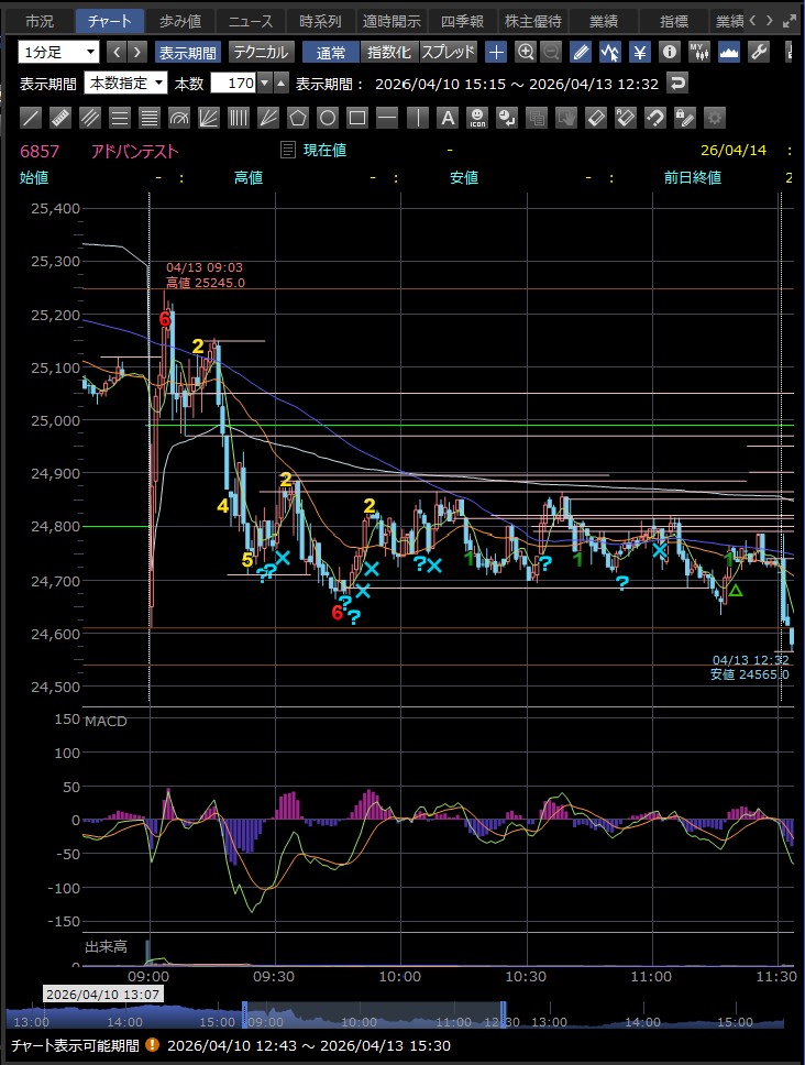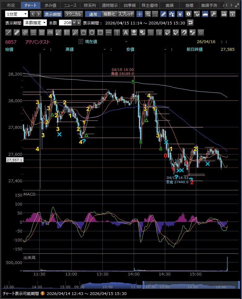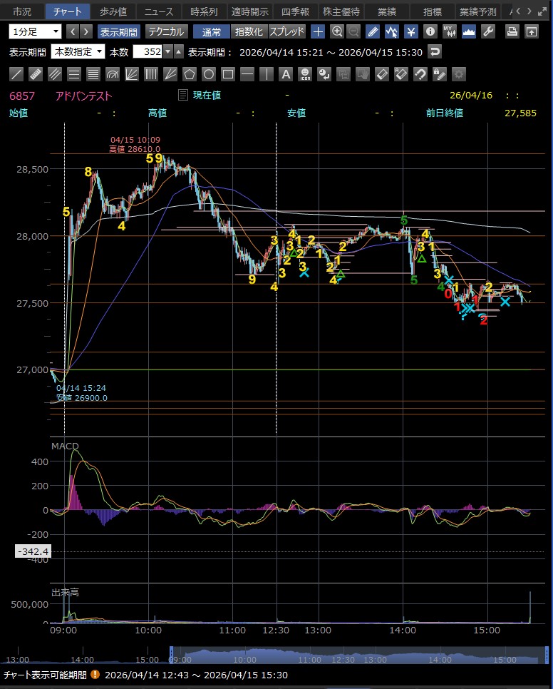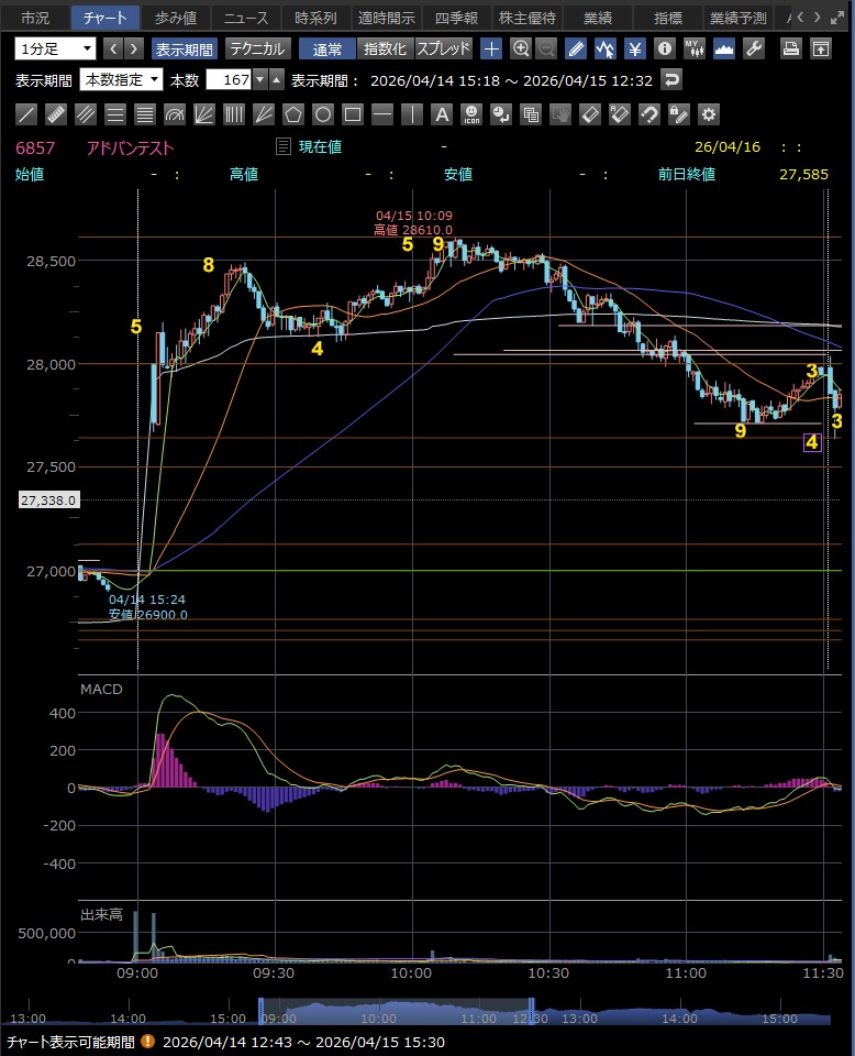 日中値幅 905円 高値から急落(利益確定売り)