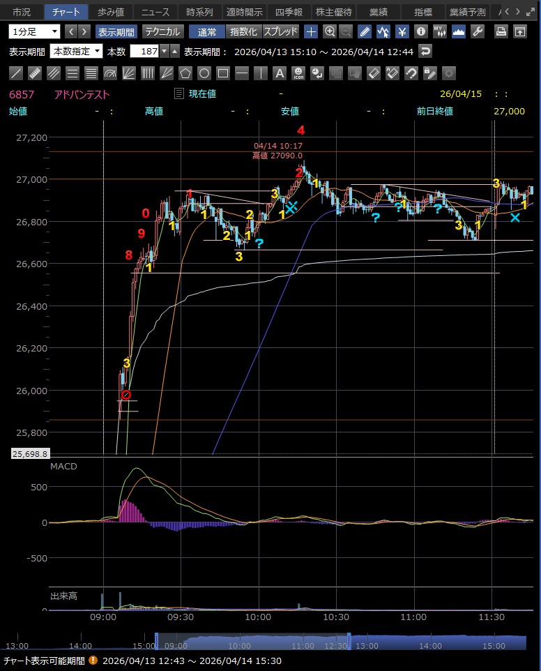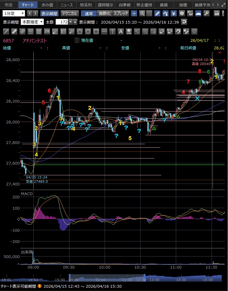 日中値幅 557円 上昇継続も勢い鈍化