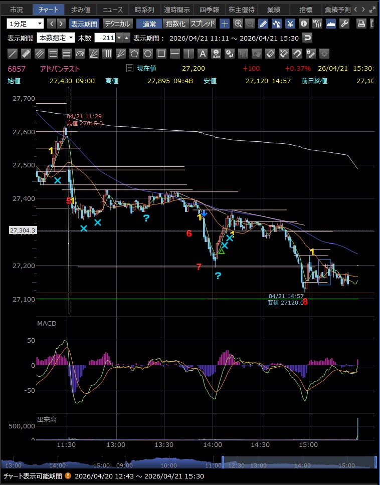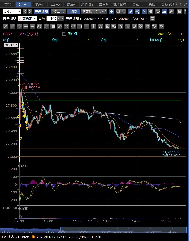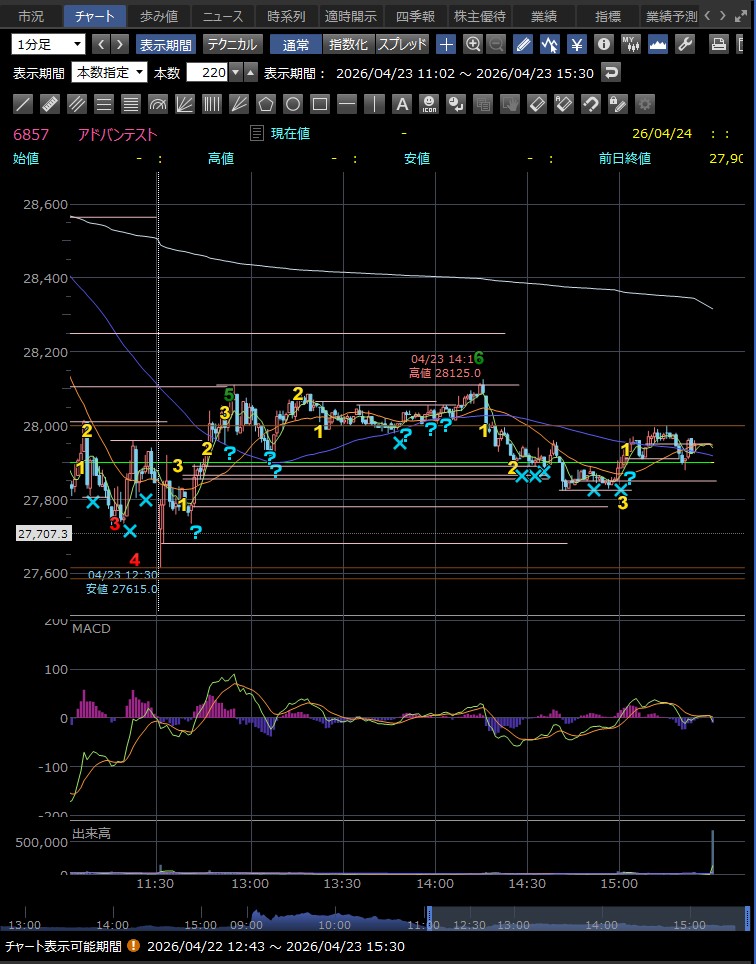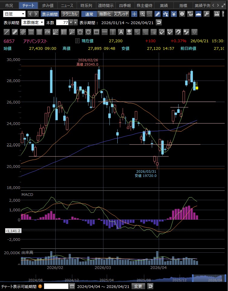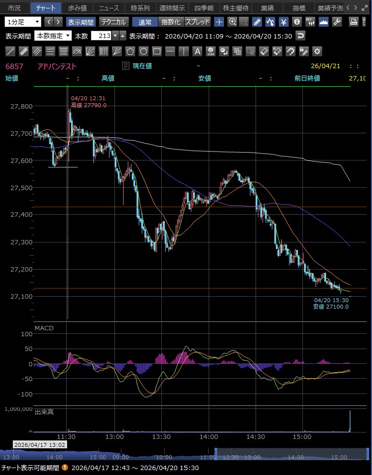日中値幅 538円 「半導体だけ元気、他は微妙」アドバンテスト27日決算前 ボラがすごい