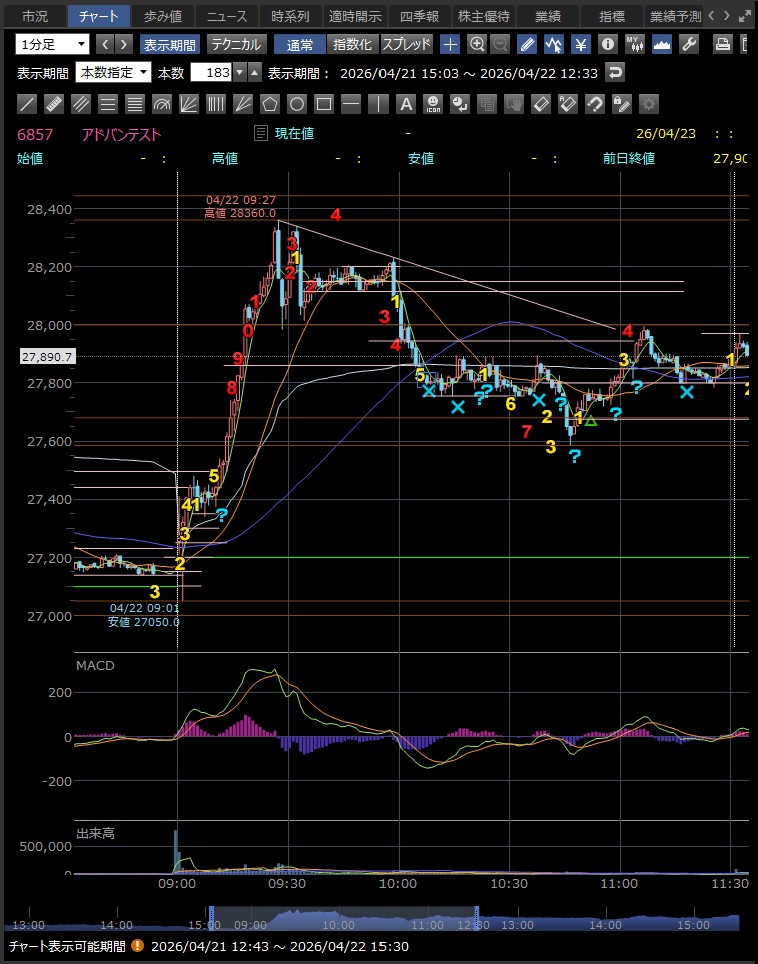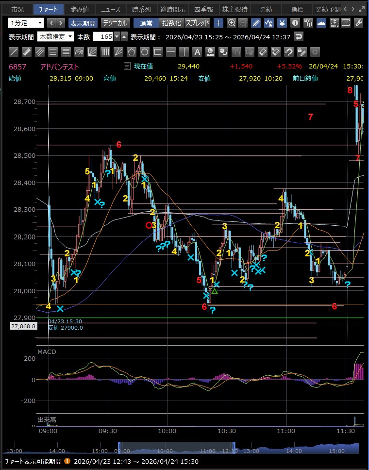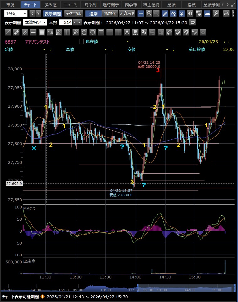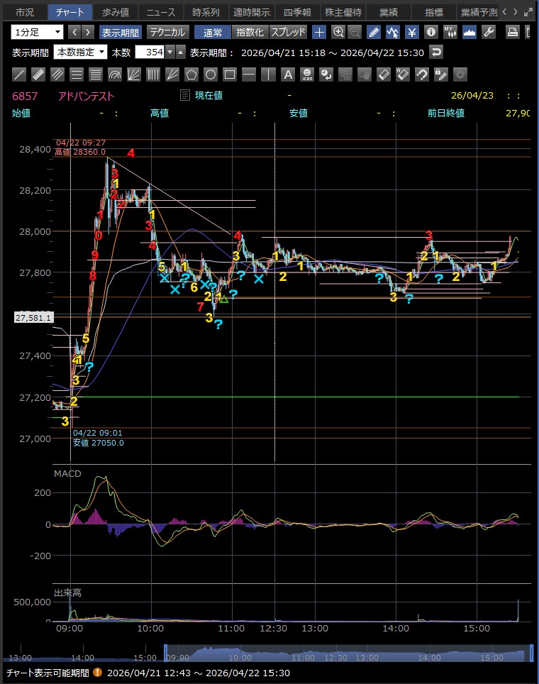 日中値幅 538円 「半導体だけ元気、他は微妙」アドバンテスト27日決算前 ボラがすごい